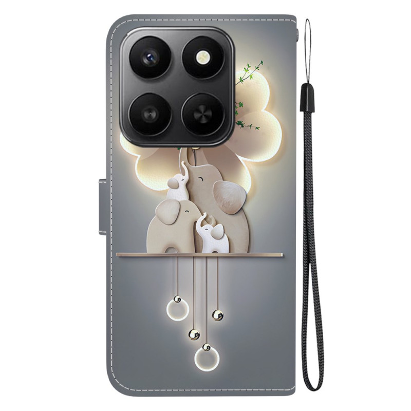 Étui portefeuille élégant avec motif trois éléphants imprimé. Fonction support intégrée pour visionnage mains libres, fermeture magnétique sécurisée, 2 emplacements pour cartes et compartiment latéral. Protection renforcée contre les chutes.