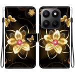 Étui élégant en cuir PU avec design floral doré pour Honor 400 Smart 5G / 4G / X7d 4G. Fonction support intégrée, fermeture magnétique sécurisée, poches pour cartes et compartiment portefeuille. Livré avec lanière détachable pour un transport pratique.