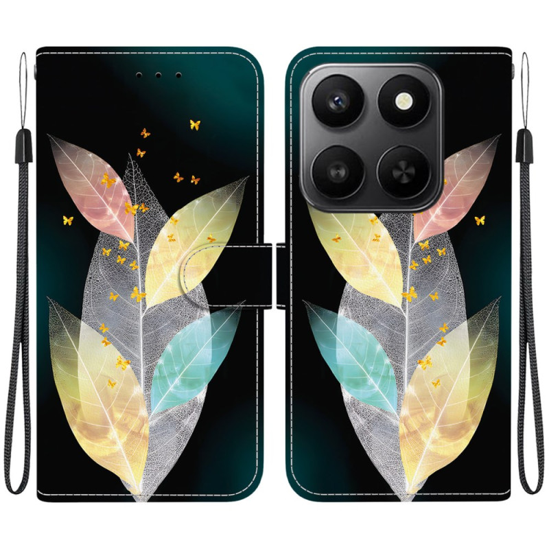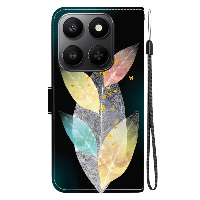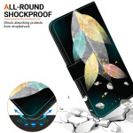 Étui portefeuille élégant en cuir PU avec motif de feuilles colorées. Fonction support intégrée pour un visionnage mains libres. Comprend 2 emplacements pour cartes, un compartiment latéral et une fermeture magnétique sécurisée. Livré avec un cordon.