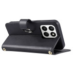 Étui portefeuille élégant avec design losange sophistiqué, anneau décoratif et support intégré. Comprend 5 emplacements pour cartes, une poche zippée et deux bretelles pour un port main, cou ou bandoulière. Protection complète contre les chutes et rayures.
