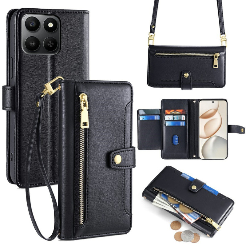 Protégez votre Honor 400 Smart 5G / X7d 4G avec cet étui portefeuille multifonction en cuir PU. Doté de 6 emplacements pour cartes, 1 poche zippée et 2 sangles détachables, il allie protection antichoc, rangement optimal et style élégant pour un usage quotidien.