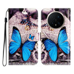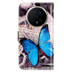 Étui portefeuille élégant avec motif papillon bleu imprimé pour Honor Magic 8 Pro 5G. Design sophistiqué avec fonction support multi-angles, fermeture magnétique sécurisée et dragonne amovible. Protège votre téléphone tout en gardant cartes et espèces à portée de main.