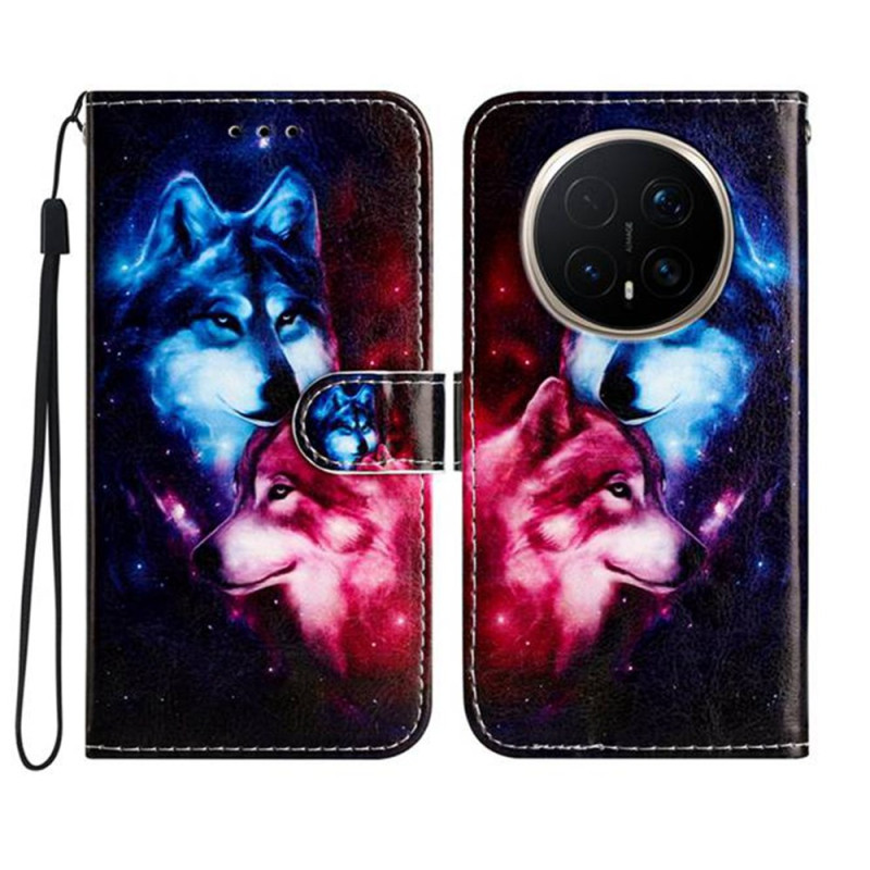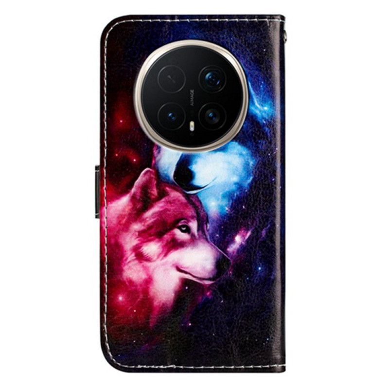 Étui portefeuille élégant avec motif de loups imprimé pour Honor Magic 8 Pro 5G. Protection intégrale en cuir synthétique avec support ajustable, 3 emplacements pour cartes, fermeture magnétique sécurisée et dragonne amovible.