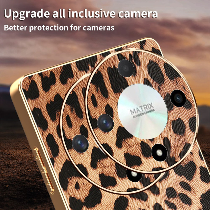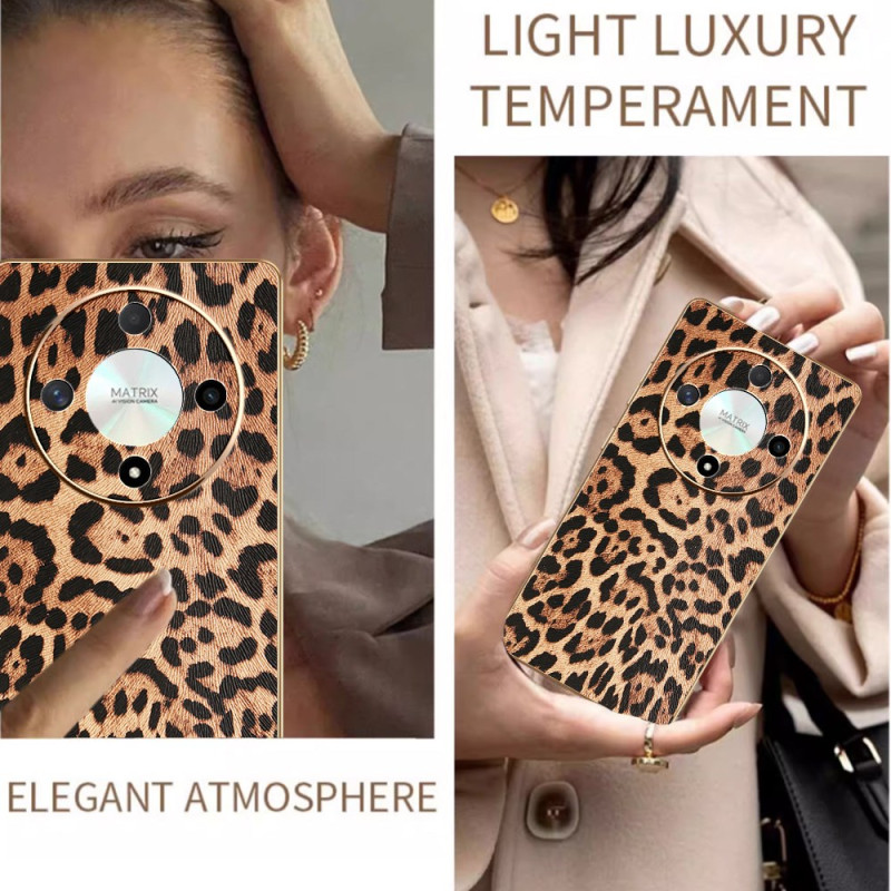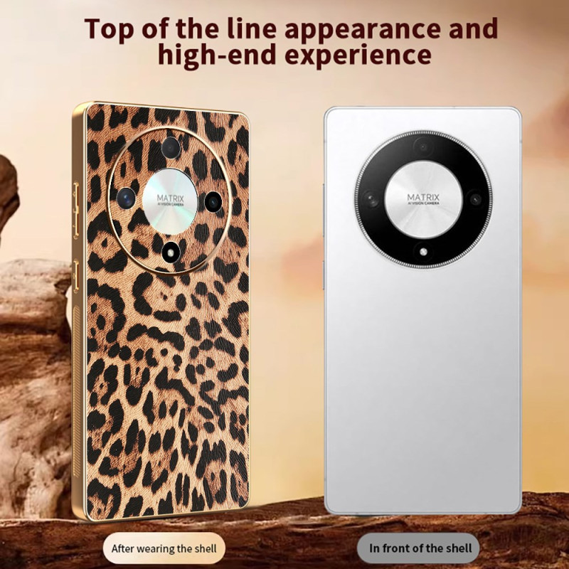 - Arborez un motif léopard audacieux et élégant avec des bordures dorées électrolytiques, offrant une esthétique mode et luxueuse à votre appareil
