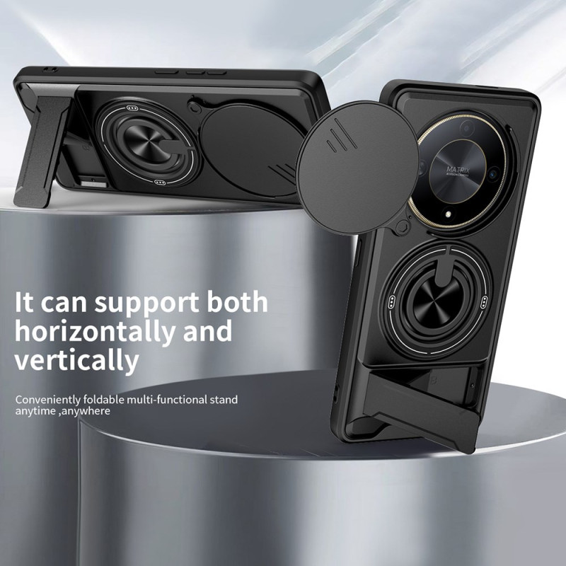 Protection maximale pour votre Honor avec cette coque magnétique innovante. Double couche résistante aux chocs, anneau rotatif 360°, support pliable intégré et cache caméra coulissant. Compatible avec les supports magnétiques pour voiture.