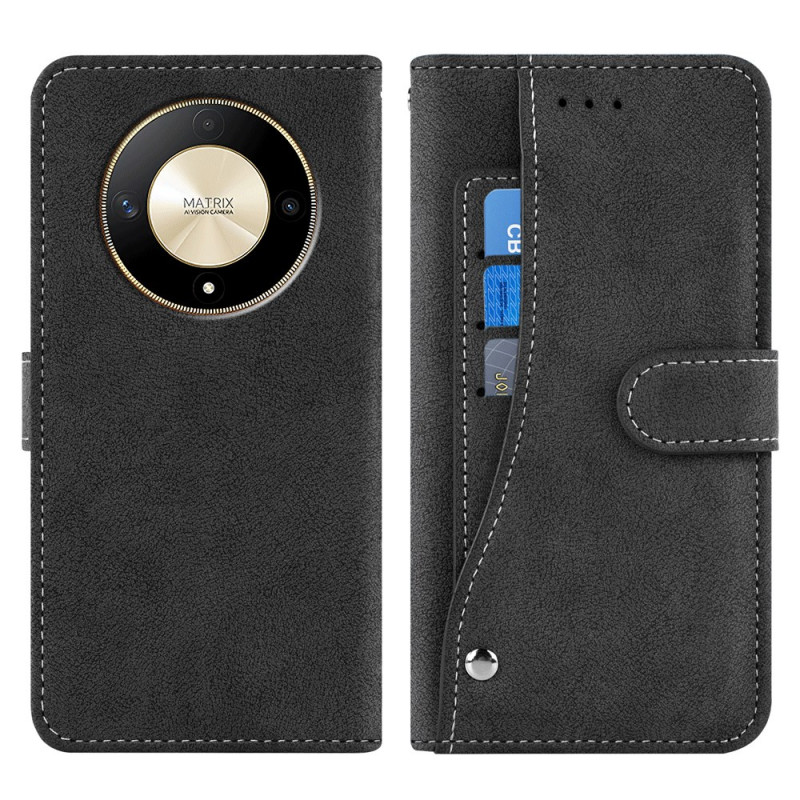 Étui portefeuille élégant au style rétro pour Honor Magic 6 Lite / X9b. Doté de 3 emplacements pour cartes intégrés, 1 poche pour billets et un porte-cartes rotatif externe. Fonction support mains libres pour visionner vos vidéos..