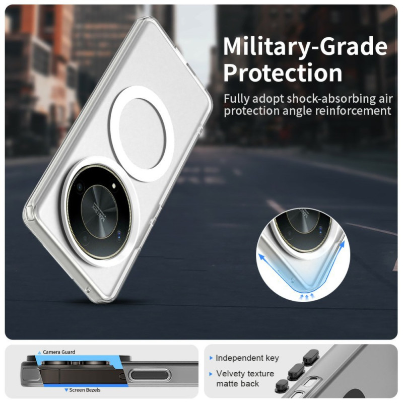 Coque hybride de protection premium pour Honor Magic 6 Lite / X9b. Conception anti-chute avec anneau magnétique intégré, compatible avec tous les accessoires magnétiques. Bords surélevés pour protéger l'écran et la caméra.