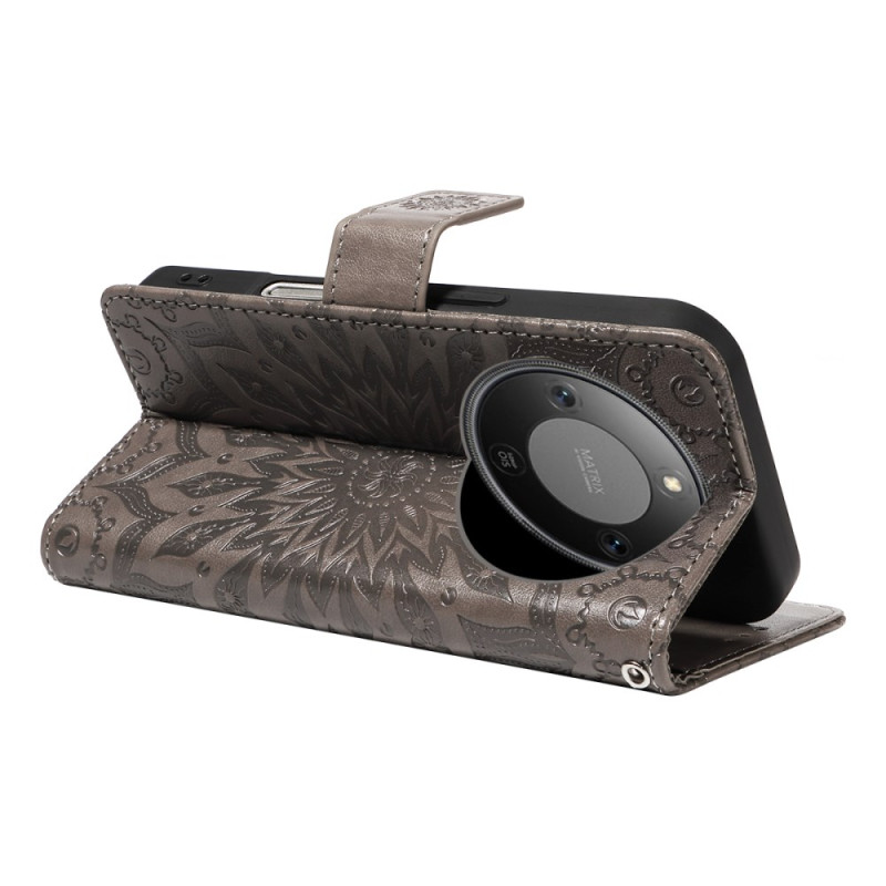Étui portefeuille élégant en cuir PU premium avec motif tournesol 3D imprimé. Comprend deux emplacements pour cartes, un compartiment latéral, une fonction support mains-libres et une dragonne pratique pour une protection complète et stylée.