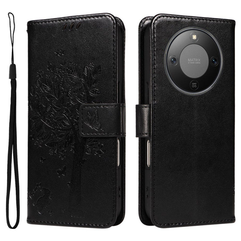 Protégez votre Honor Magic 8 Lite / X9d avec élégance grâce à cet étui portefeuille multifonction. Doté d'un motif chat et arbre raffiné, il offre des compartiments pour cartes, un support intégré et une dragonne pratique pour un usage quotidien optimal.