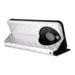Étui portefeuille élégant en cuir PU avec motif losange 3D gravé. Design raffiné alliant style et fonctionnalité avec porte-cartes intégrés, fonction support mains-libres et fermeture magnétique. Protection complète à 360° contre les chocs et rayures.