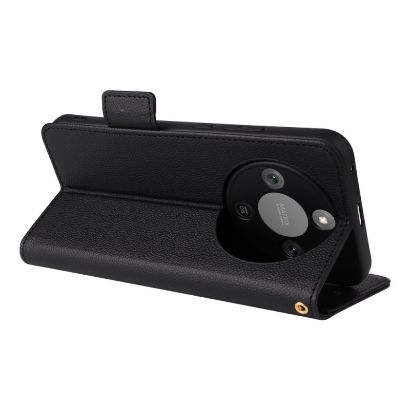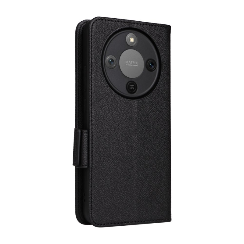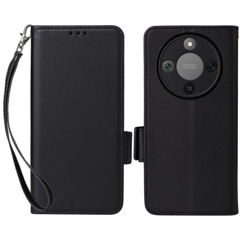 Étui portefeuille élégant en cuir PU avec texture litchi pour Honor Magic 8 Lite / X9d. Doté de multiples emplacements pour cartes, d'une fonction support mains libres et d'une fermeture magnétique sécurisée. Livré avec une dragonne pratique.