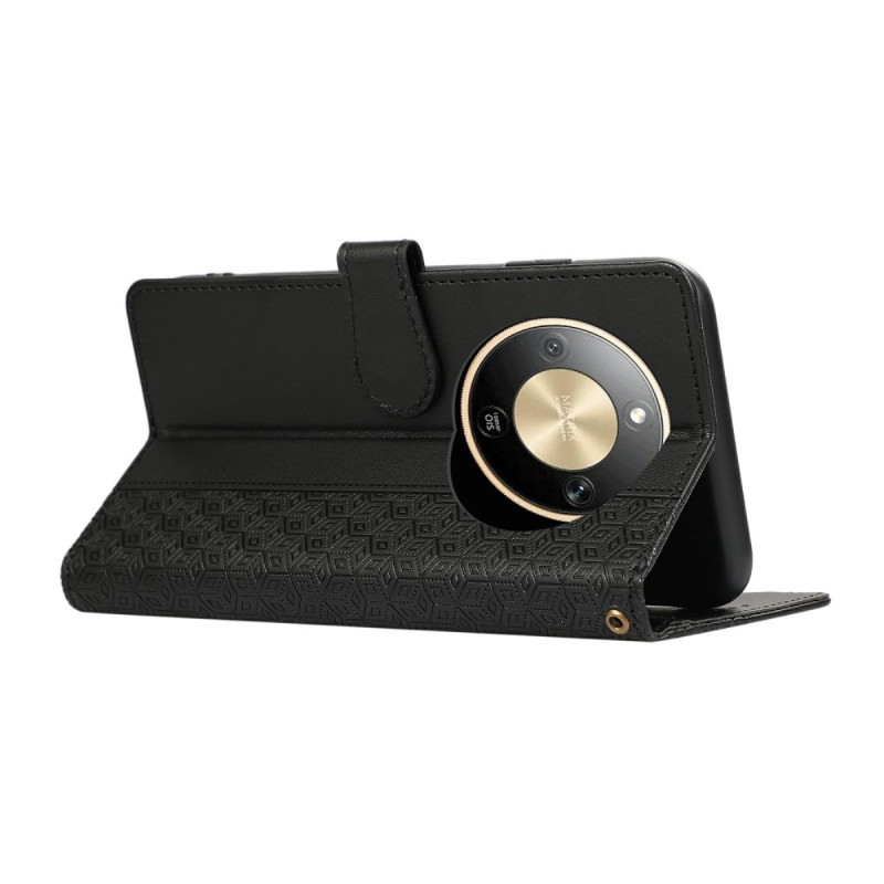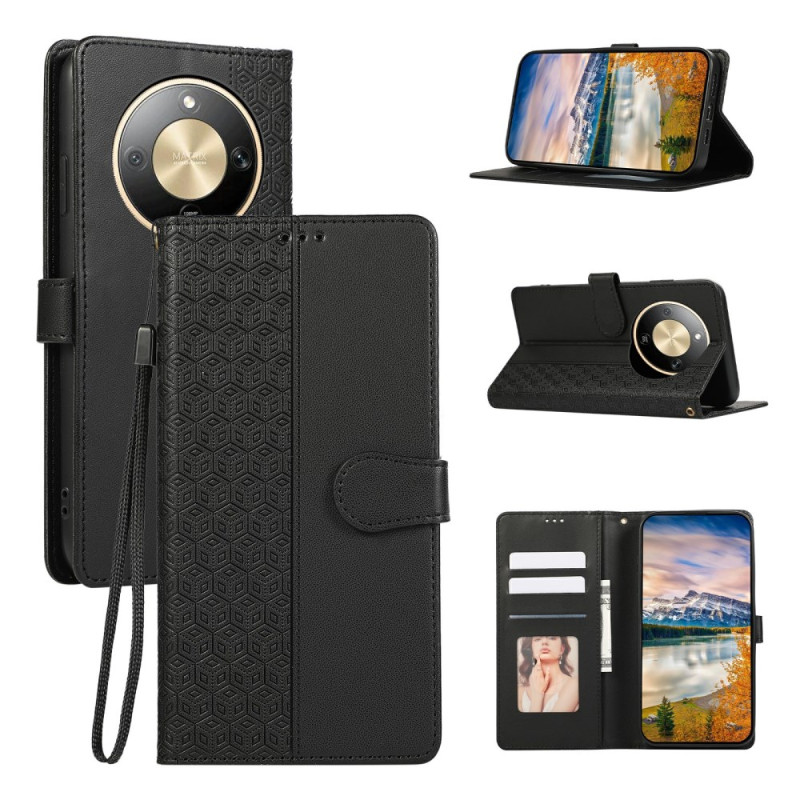 Élégante coque en similicuir avec motif losange gaufré pour votre Honor. Fonction portefeuille avec 2 emplacements cartes et 1 poche billet. Support intégré pour visionnage mains libres et dragonne amovible pour transport facile.