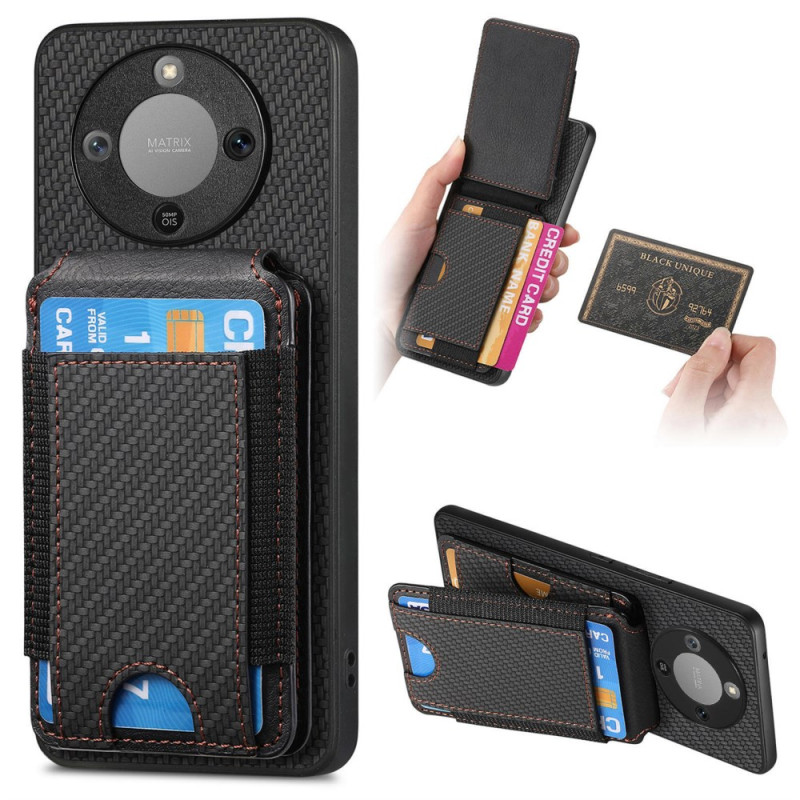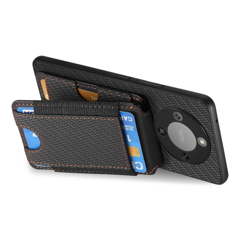 Étui sophistiqué avec texture fibre pour Honor Magic 8 Lite / X9d. Conception innovante incluant un support multi-angles, des compartiments porte-cartes intégrés et une protection antichoc renforcée. Compatible support magnétique voiture...