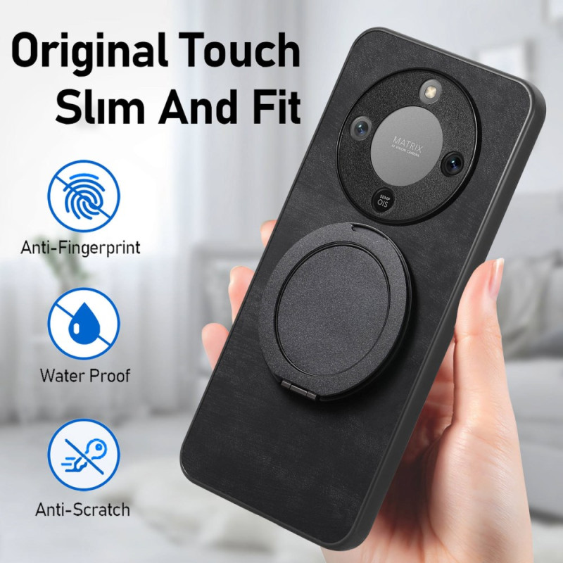 Coque Honor Magic 8 Lite Effet Daim Support Rotatif
