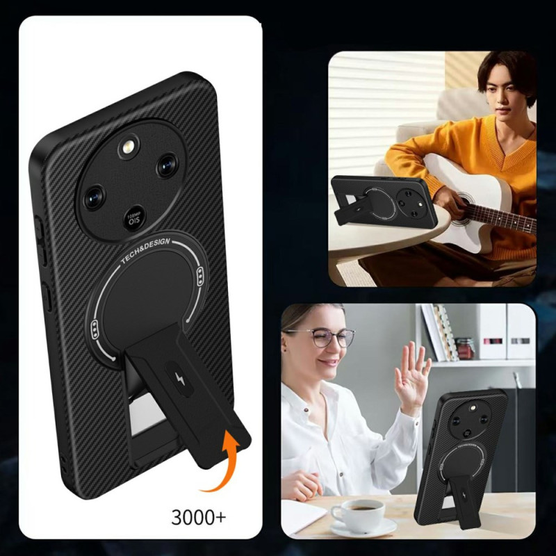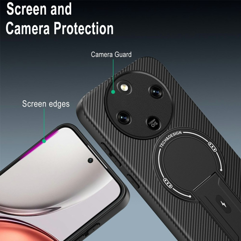 Coque hybride ultra-protectrice pour Honor Magic 8 Lite 5G avec texture fibre de carbone, support intégré et protection anti-choc renforcée. Compatible support magnétique voiture et design anti-surchauffe.