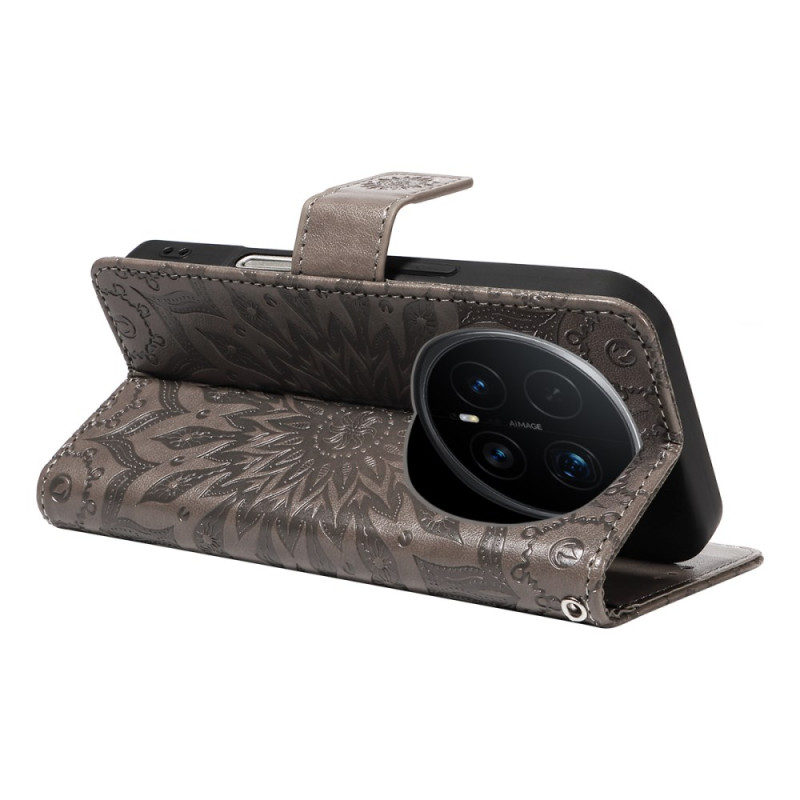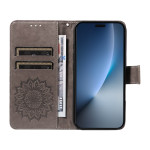 Étui portefeuille élégant en cuir PU premium avec design tournesol en relief 3D. Comprend 2 emplacements pour cartes, compartiment latéral, fonction support mains-libres et dragonne pratique. Protection robuste avec coque intérieure en TPU mat.