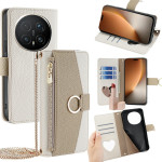 Étui portefeuille multifonctionnel en cuir PU pour Honor Magic 8 Pro 5G. Design élégant avec miroir intégré, 3 emplacements cartes, compartiment à billets et poche zippée. Livré avec bandoulière chaîne de 1,2m et anneau support. Protection...