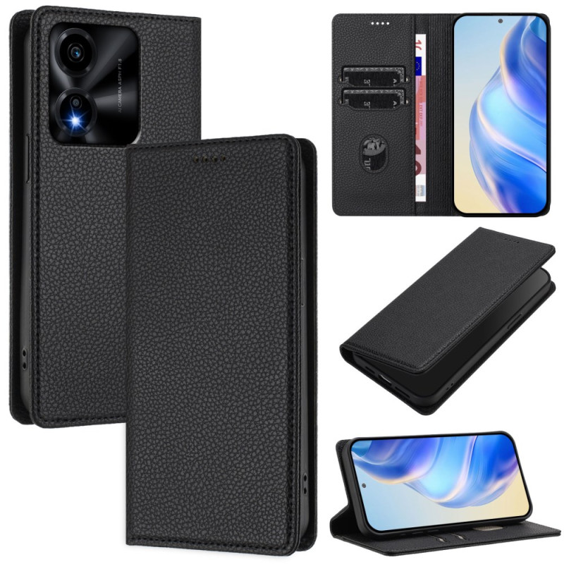 Découvrez notre housse portefeuille élégante et fonctionnelle pour Honor X5c Plus. Fabriquée en cuir PU texturé et TPU, elle offre une protection RFID, un rangement pratique pour cartes et billets, et une fonction support ajustable. Compatible avec la charge sans fil, cette coque allie sécurité et praticité pour votre smartphone.