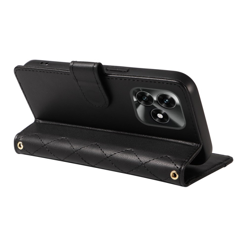 Découvrez notre étui portefeuille élégant pour Honor X5c Plus. Fabriqué en cuir PU et TPU mat, il offre une protection complète contre les rayures et les chocs. Son design à motif losange ajoute une touche de style, tandis que ses fonctionnalités pratiques en font un accessoire indispensable.