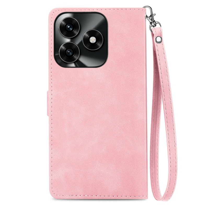 Étui portefeuille élégant en cuir PU avec motif floral pour Honor X5c Plus 4G. Doté de multiples emplacements pour cartes, d'une poche zippée externe, d'une fermeture magnétique sécurisée et d'une dragonne pratique.