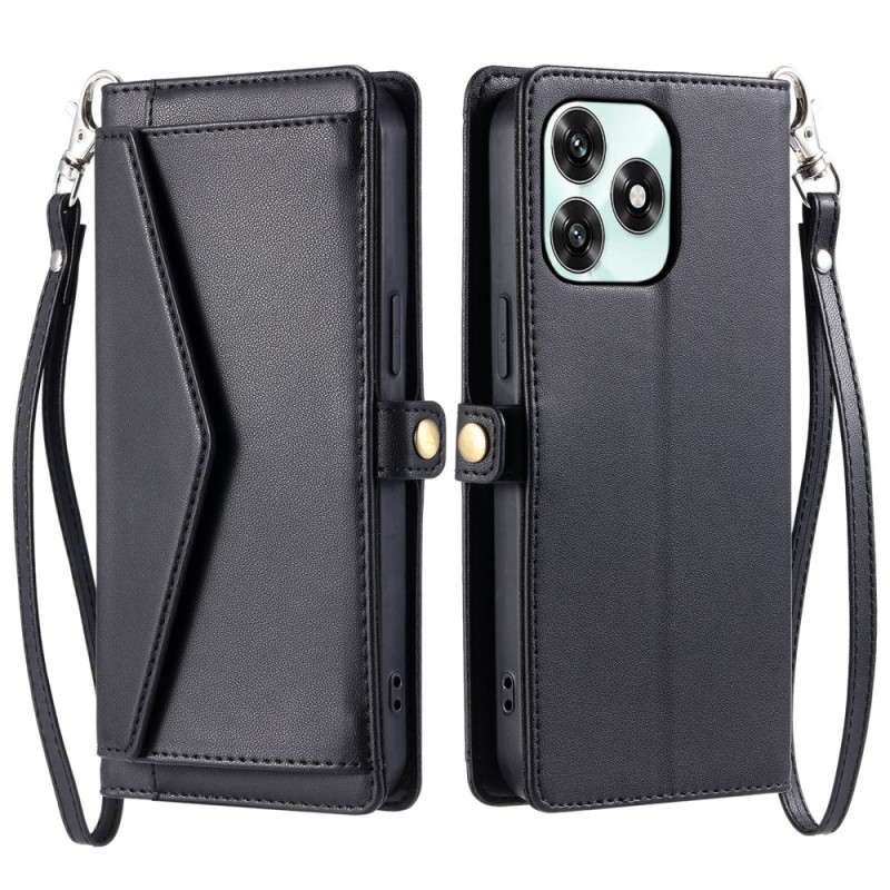 Étui élégant en cuir PU premium avec fonction portefeuille intégrée. Dispose de 3 emplacements pour cartes, 1 compartiment pour billets, et un support pliable ajustable. Livré avec une dragonne pratique pour un transport mains libres.