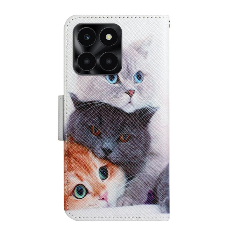 Protégez votre Honor X6c 4G / X6b 4G / X6a 4G / X5b / X5b Plus avec style grâce à cet étui folio au charmant motif trois chats. Doté de fonctions portefeuille pratiques, d'un support intégré et d'une dragonne amovible, il combine élégance et praticité pour votre quotidien.