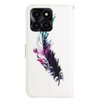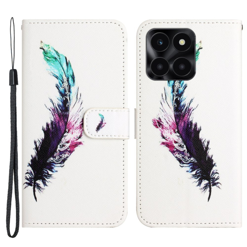 Découvrez cet étui à rabat élégant avec impression 3D motif plume pour votre Honor X6c 4G / X6b 4G / X6a 4G. Design portefeuille pratique avec support intégré, fermeture magnétique sécurisée et dragonne amovible.