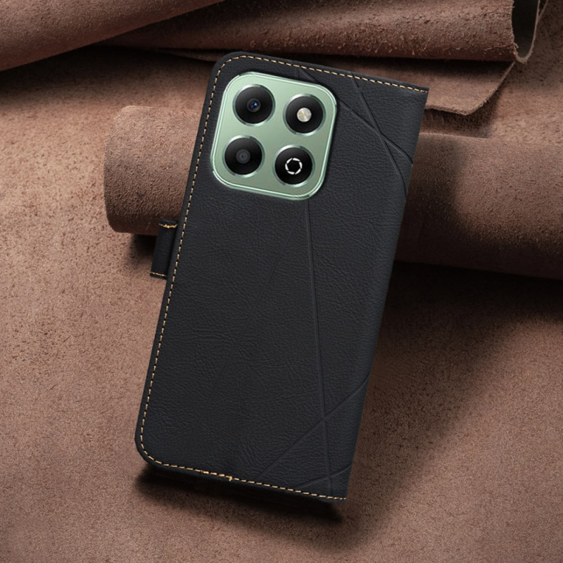 Protégez votre Honor X6b 4G avec style grâce à cet étui portefeuille en cuir PU premium. Doté d'un design géométrique élégant, il offre 3 emplacements pour cartes, un compartiment pour billets et une protection RFID anti-fraude.