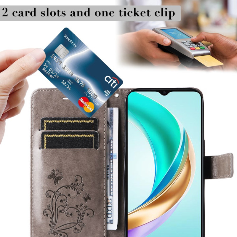 Protégez votre Honor X6c 4G / X6b 4G / X6a 4G / X5b / X5b Plus  avec élégance grâce à cet étui portefeuille en cuir PU premium. Design raffiné avec motif papillon floral imprimé, compartiments pour cartes et espèces, fonction support mains libres et dragonne pratique. Protection complète...