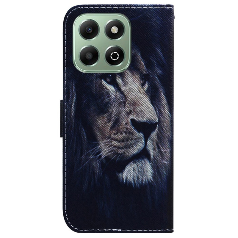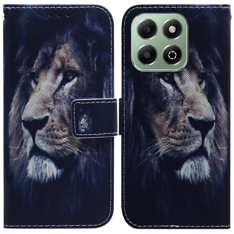 Étui portefeuille élégant avec motif lion pour Honor X6b 4G. Conception en cuir avec porte-cartes intégrés, support pliable et fermeture magnétique sécurisée. Protection complète contre les chocs et rayures tout en gardant vos cartes à portée de main.