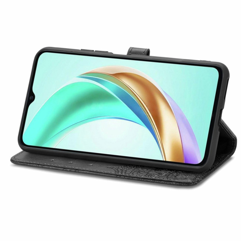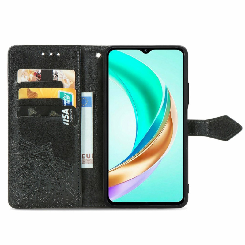 Étui portefeuille élégant pour Honor X6b 4G avec design mandala gravé. Comprend 3 emplacements pour cartes, une poche pour billets, un support mains-libres et une dragonne pratique. Fermeture magnétique sécurisée pour une protection optimale.