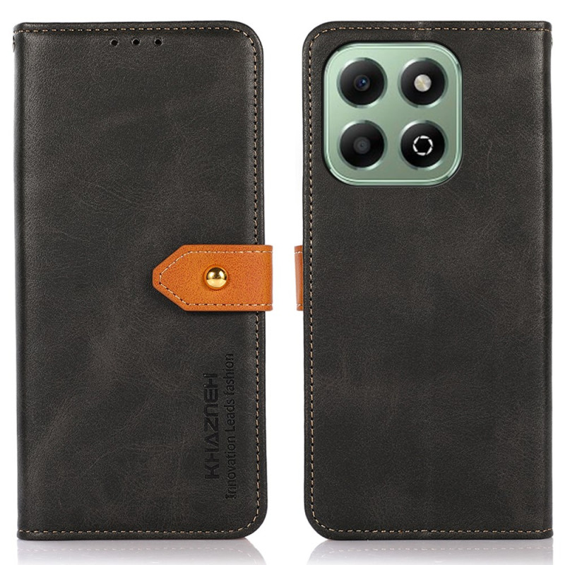 Étui portefeuille élégant en cuir PU pour Honor X6b 4G. Design sophistiqué avec fermeture magnétique dorée, compartiments pour cartes et support ajustable. Protection optimale contre les chocs tout en gardant vos essentiels à portée de main.