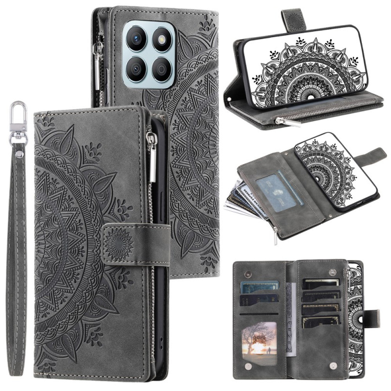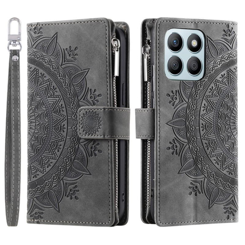 Étui portefeuille élégant pour Honor X6b 4G avec motif mandala sophistiqué. Combine style et fonctionnalité avec ses multiples compartiments pour cartes et espèces, sa fermeture magnétique sécurisée et son support mains libres intégré.