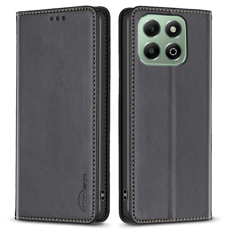 Étui à rabat élégant pour Honor X6b 4G avec porte-cartes intégrés et fonction support. Fermeture magnétique sécurisée et protection renforcée de la caméra. Profitez d'une expérience mains libres tout en gardant vos cartes essentielles à portée de main.