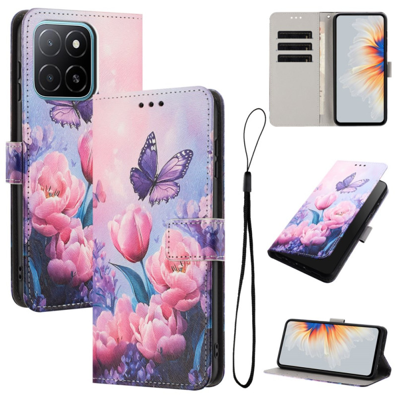 Protégez votre Honor X6c 4G avec élégance grâce à cet étui portefeuille au design raffiné orné de fleurs roses et papillons. Doté de compartiments pour cartes, d'un support de visionnage pratique et d'une dragonne, il allie style et fonctionnalité.