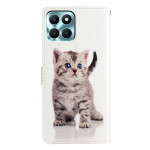 Découvrez cet étui portefeuille élégant pour Honor X6c 4G au motif chat adorable. Conçu avec un support pratique, une fermeture magnétique sécurisée, 3 fentes pour cartes et une poche pour espèces. La dragonne incluse facilite le transport.