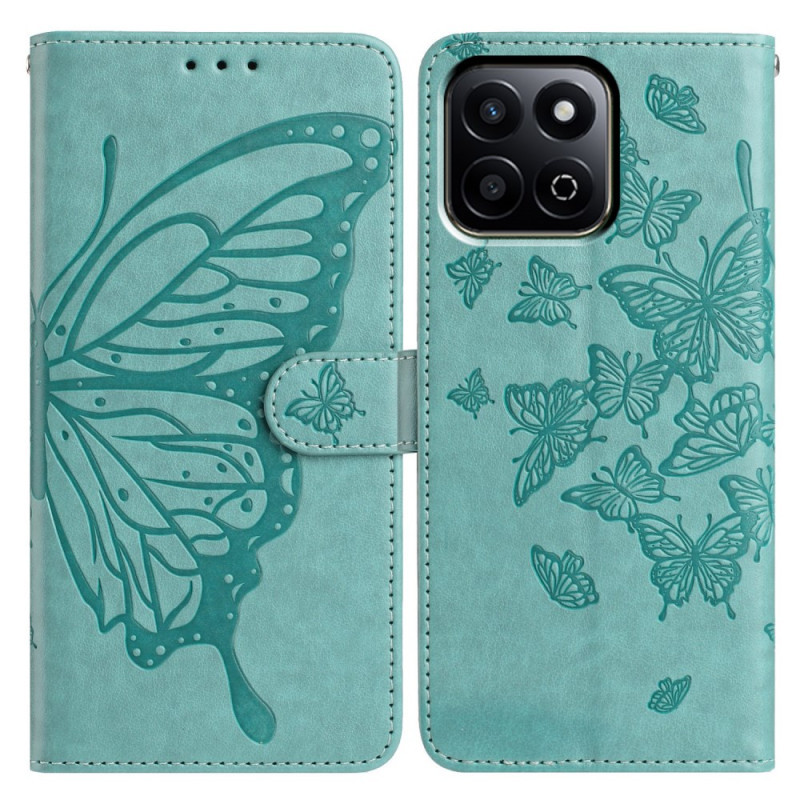 Étui élégant pour Honor X6c 4G avec motif papillon embossé. Combine portefeuille et protection avec support intégré, fermeture magnétique sécurisée et dragonne pratique. Rangez vos cartes et profitez d'un usage mains libres.