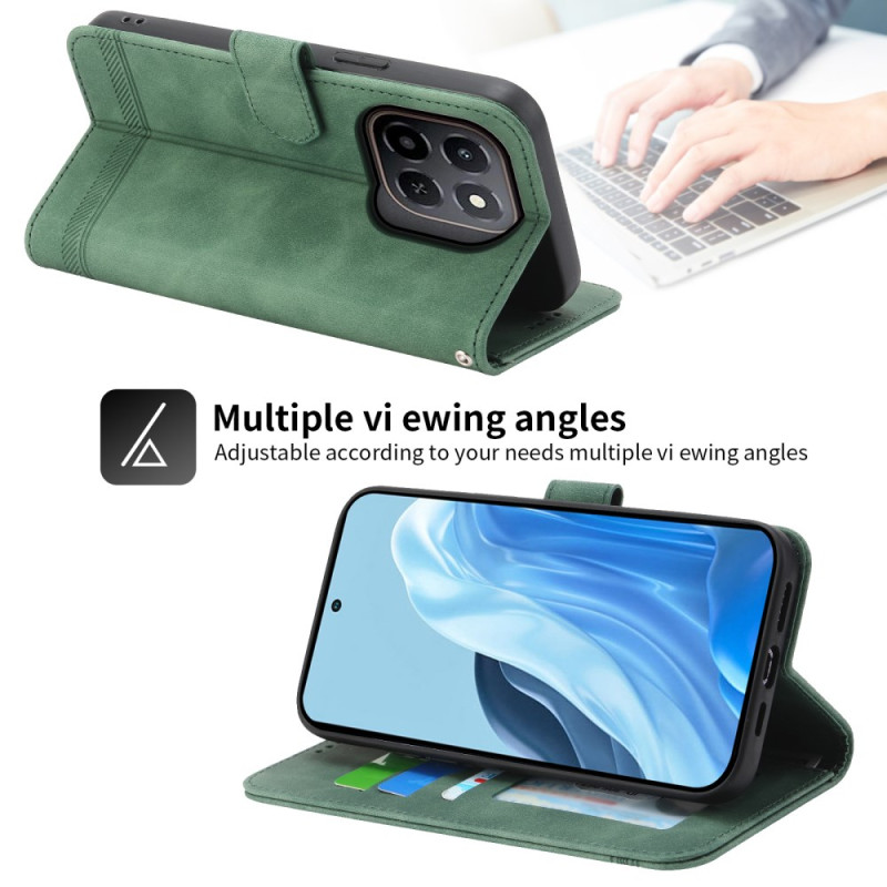 Protégez votre Honor avec style grâce à cet étui portefeuille en cuir PU avec impression de lignes élégantes. Doté d'emplacements pour cartes, d'un compartiment à billets et d'une fonction support, il combine praticité et protection optimale.