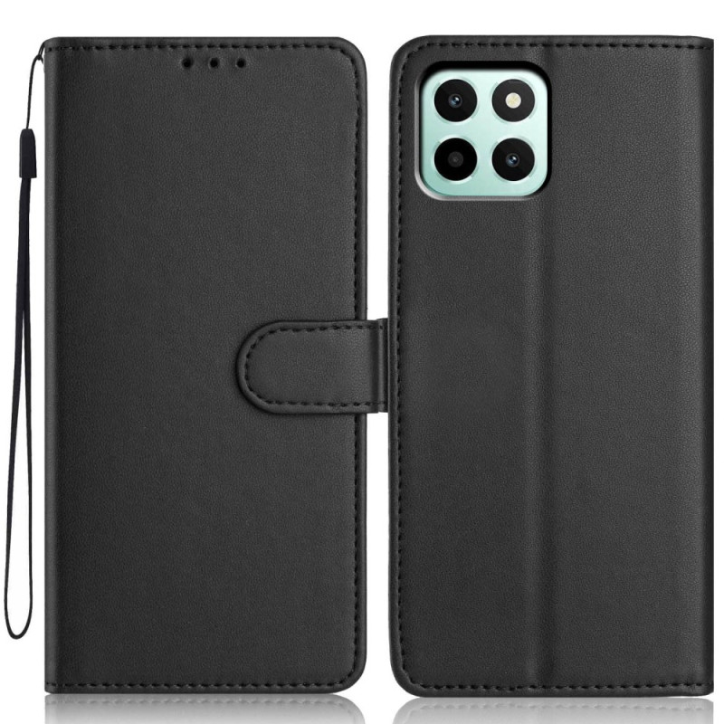 Étui portefeuille élégant pour Honor X6c 4G avec dragonne pratique, multiples emplacements pour cartes et support intégré. Design en cuir PU sophistiqué offrant protection complète et fonctionnalité optimale au quotidien.