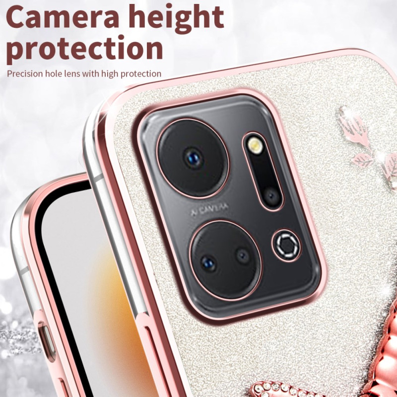 Sublimez votre Honor X7a 4G avec cette coque élégante ornée de fleurs éternelles et de strass scintillants. Son support libellule intégré permet un visionnage mains libres, tandis que le matériau TPU résistant assure une protection optimale au quotidien.