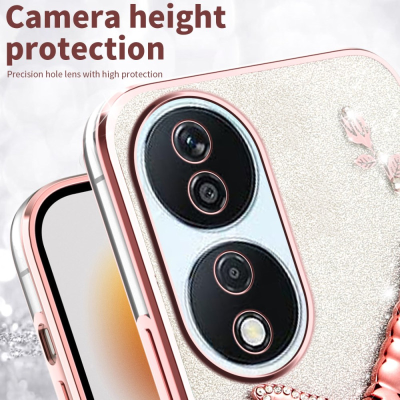 Protégez votre Honor X7b avec élégance grâce à cette coque scintillante ornée de fleurs éternelles et strass. Son support libellule intégré permet un visionnage mains libres, tandis que les bords surélevés protègent votre caméra des rayures.