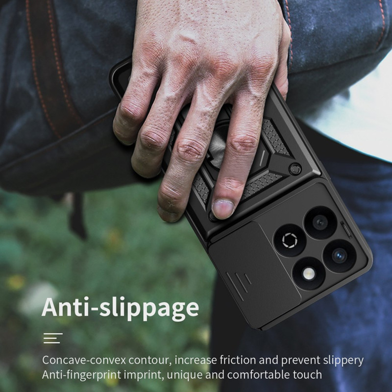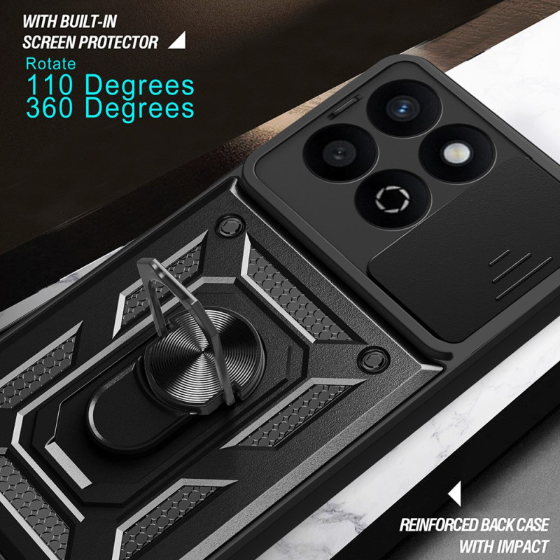 Protégez votre Honor X7c 5G / 4G / 200 Smart 5G avec style grâce à cette coque robuste dotée d'une protection caméra coulissante innovante et d'une béquille rotative multifonction. Conception anti-chocs de qualité militaire avec support magnétique intégré pour fixation voiture.
