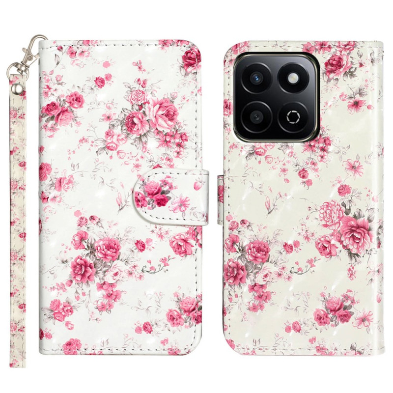 Housse Honor X7c 5G / 4G / 200 Smart 5G Fleurs Roses à Lanière