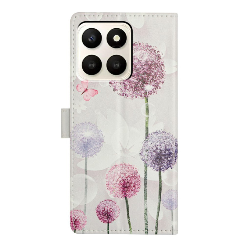 Étui portefeuille élégant avec motif pissenlit pour Honor X7d 5G. Doté de fentes pour cartes, support pliable et dragonne amovible. Fermeture magnétique sécurisée et protection intégrale contre les chocs et rayures.