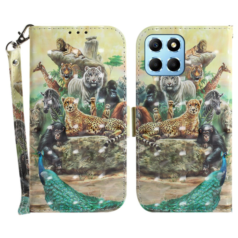 Protégez votre Honor X8 5G avec style grâce à cet étui portefeuille élégant orné de motifs animaux. Doté de compartiments pour cartes, d'un support pliable et d'une dragonne pratique, il allie protection et fonctionnalité au quotidien.