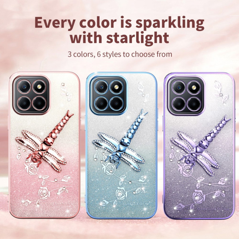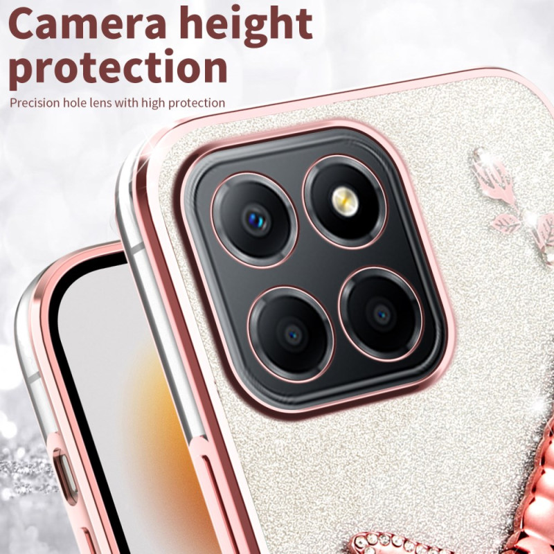 Protégez votre Honor X8 5G avec élégance grâce à cette coque scintillante ornée de fleurs éternelles et strass. Son support libellule intégré permet un visionnage mains libres, tandis que le matériau TPU flexible assure une protection optimale contre les chocs du quotidien.