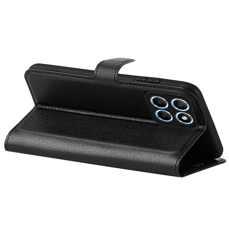 Étui portefeuille élégant pour Honor X8 5G combinant protection et praticité. Intègre un support ajustable pour visionnage mains libres, des emplacements pour cartes et une fermeture magnétique sécurisée.