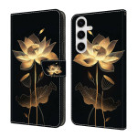 Étui portefeuille élégant pour Samsung Galaxy S26 Plus avec motif lotus doré raffiné. Design à rabat avec support pliable intégré, 2 emplacements pour cartes et compartiment à billets. Fermeture magnétique sécurisée pour une protection optimale.
