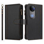Étui portefeuille multifonction pour Vivo V50 5G offrant une protection complète. Doté de 9 emplacements pour cartes, d'une poche zippée pour la monnaie et d'un support mains libres. Fermeture magnétique sécurisée et dragonne pratique incluse.