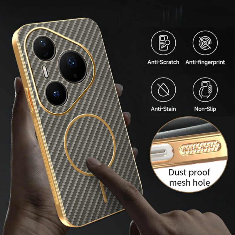Protection premium pour votre Huawei Pura 80 Pro avec finition électrodéposée élégante. Construction TPU flexible offrant absorption des chocs supérieure et ajustement parfait. Revêtement texture fibre de carbone anti-traces pour un look impeccable.